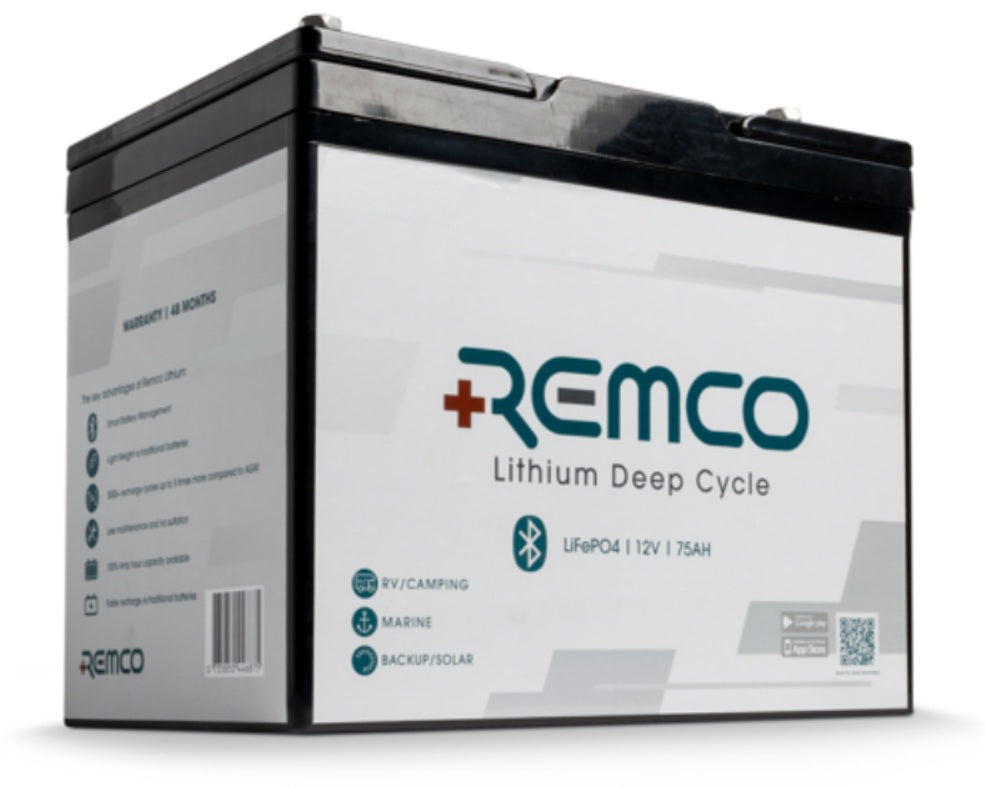 Whether you're powering your 4WD, caravan, marine setup or off-grid system, the Remco 12V 75Ah LiFePO₄ battery delivers long-lasting performance, fast charging, and exceptional cycle life.