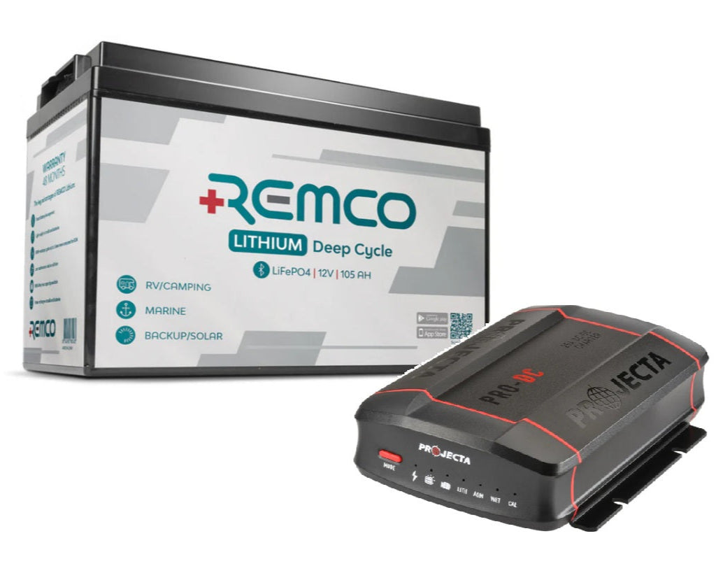 REMCO 105AH LIFEPO4 BATTERY + BLUETOOTH + PDC25 CHARGER