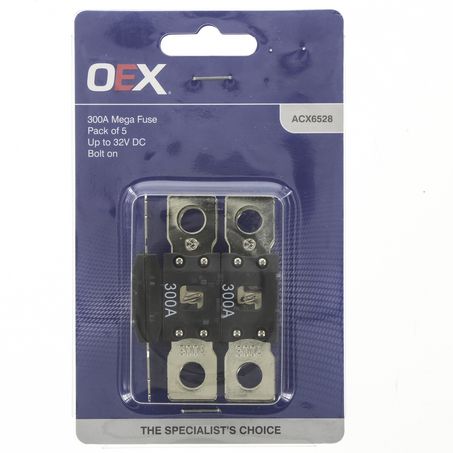 • OEX Mega Fuse, Bolt On• Amp: 300A• 32V DC• Type: SF51• Copper Tin Plated• Mounting: centre to centre 50.8mm• Single Pack• Also available in a pack of 5