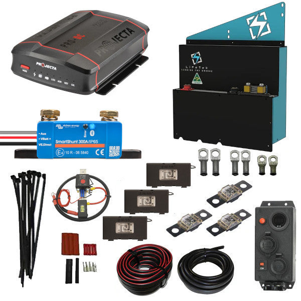 Supplied with premium lugs, automotive-grade cabling, and a Victron Energy 300A SmartShunt delivering sophisticated real-time battery intelligence.