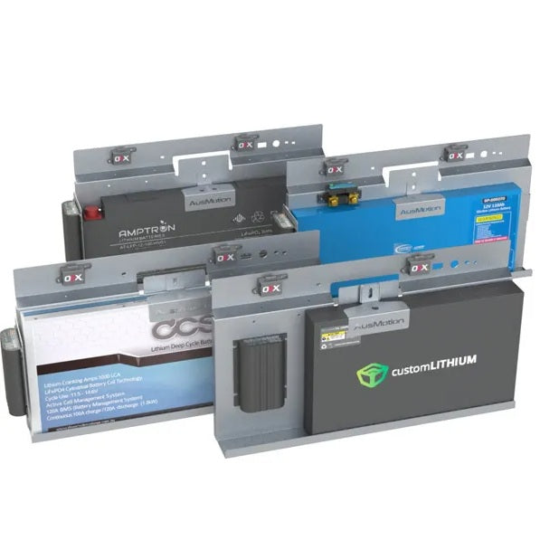 Designed for a range of slimline lithium batteries, this robust stainless-steel mount provides a secure and tidy installation for your Hilux cab back wall. It accommodates multiple battery brands while allowing easy integration of a universal battery charger.