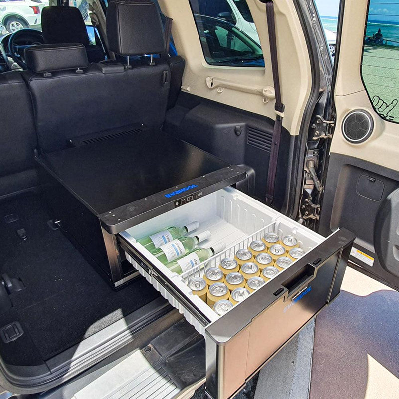 Hit the road with confidence with EvaKool's Platinum 40L Drawer Fridge Freezer, designed for the Aussie adventurer. Keep your food and beverages icy cold, thanks to our world-renowned Secop compressor and superior refrigeration system. With features like internal LED lighting, an easy-to-read LED display, a compact design boasting a 48-can capacity, and a secure Anderson-style plug, this drawer fridge/freezer is your ideal travel companion. Made in Australia to endure the harsh heat, it offers easy cleaning and efficient storage for a seamless journey, whether it's a fun-filled beach day or a weekend with mates. Trust in EvaKool, and never worry about your favorite drinks going warm again.