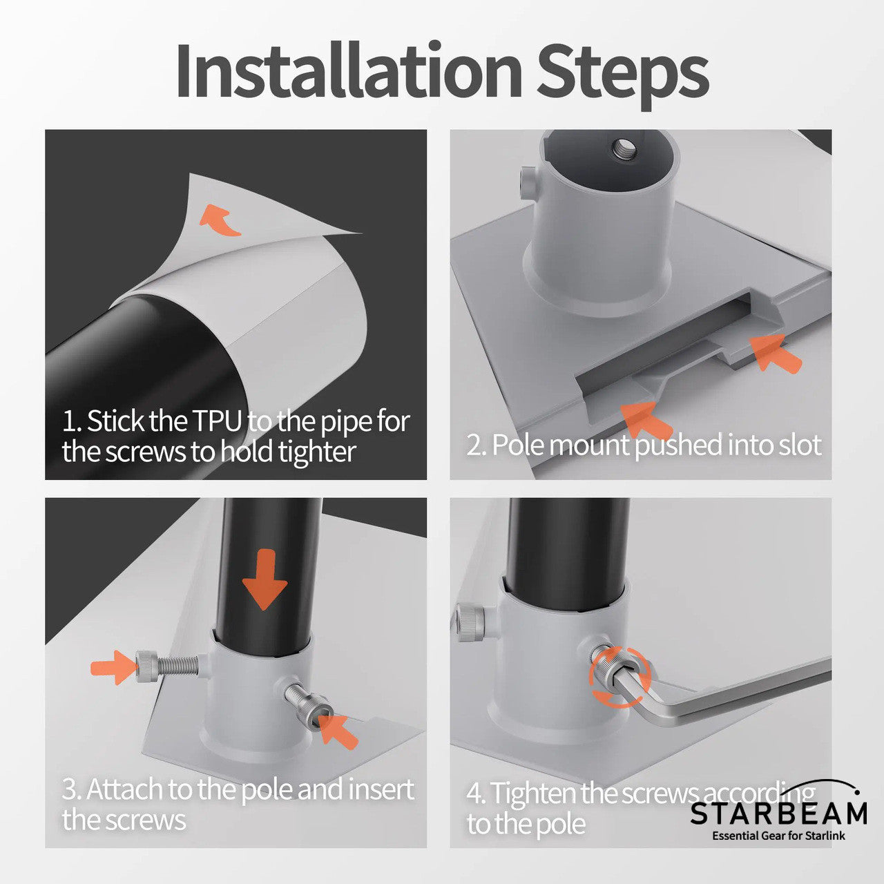 - Precise Compatibility:Ā Tailored to fit poles within the 37mm to 48mm diameter range, ensuring a snug and secure fit for your Starlink Gen 3 dish.