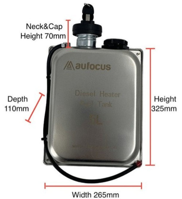 - 5L Stainless Steel Fuel Tank with Level Gauge: This heater features a stainless steel tank as standard, eliminating concerns about corrosion.