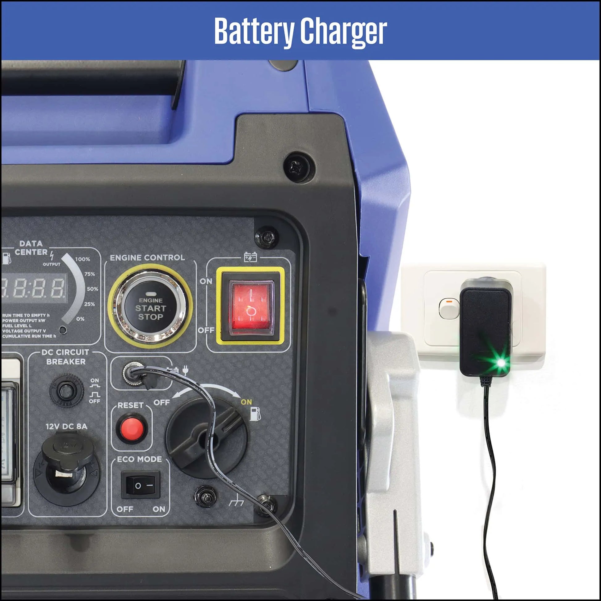 - 240 Volt AC plug-in charger to maintain onboard battery