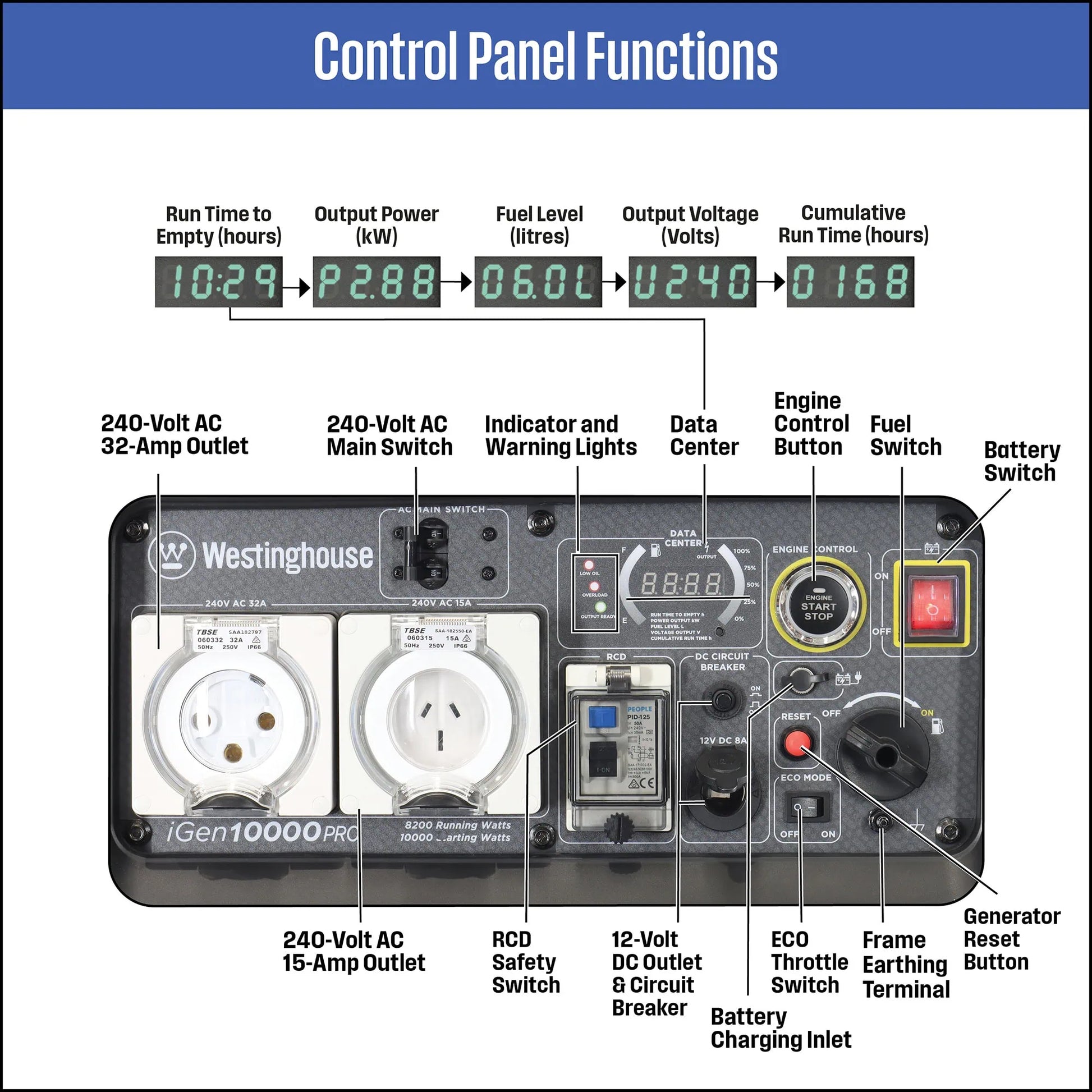 The new iGen10000PRO is the largest Westinghouse inverter generator with an inbuilt RCD